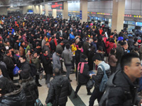 哈爾濱公路因強降雪受阻 大批旅客擁至火車站