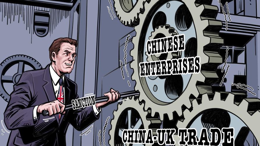 中國(guó)日?qǐng)?bào)漫畫(huà):商務(wù)部:中方堅(jiān)決反對(duì)英方以涉俄為由制裁中國(guó)企業(yè)