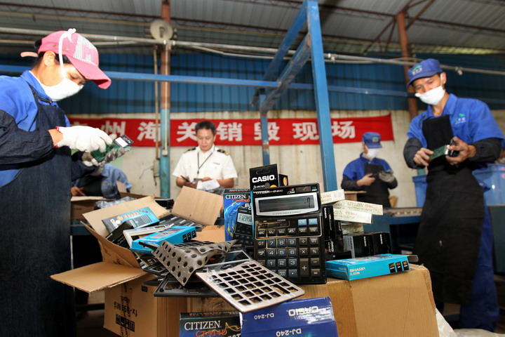 10月9日,廣州海關(guān)舉行了一次侵權(quán)貨物公開(kāi)銷(xiāo)毀活動(dòng),以環(huán)保形式銷(xiāo)毀了該關(guān)近期沒(méi)收的侵權(quán)貨物,表明了知識(shí)產(chǎn)權(quán)海關(guān)保護(hù)工作在打擊侵害消費(fèi)者健康安全的不法行為,保護(hù)消費(fèi)者合法權(quán)益方面的堅(jiān)強(qiáng)決心。