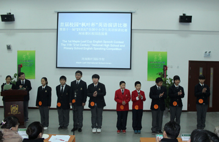 據(jù)悉,初中組冠軍呂桐炎和小學組冠軍楊冰瑞兩名同學將代表河南楓葉國際學校分別參加12月份舉辦的第11屆“21世紀杯”全國中小學生英語演講比賽河南賽區(qū)總決賽初中組和小學組的比賽,并與來自其他學校的優(yōu)秀選手一較高下,脫穎者將代表河南省參加明年4月份的全國總決賽。
