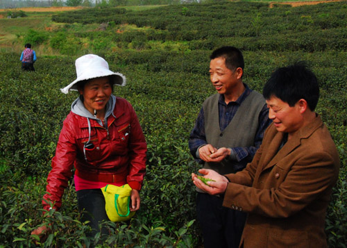 4月9日,河南省潢川縣仁和鎮(zhèn)板崗村茶農(nóng)正在喜摘春茶。該村在當(dāng)?shù)剞r(nóng)村信用社的支持下,利用山崗?fù)临|(zhì)優(yōu)勢(shì),種植茶葉300多畝,采用先進(jìn)加工技藝,生產(chǎn)出優(yōu)質(zhì)生態(tài)毛尖茶,產(chǎn)品暢銷省內(nèi)外,年收入突破20萬元。 (通訊員 陳柏松 毛云飛)