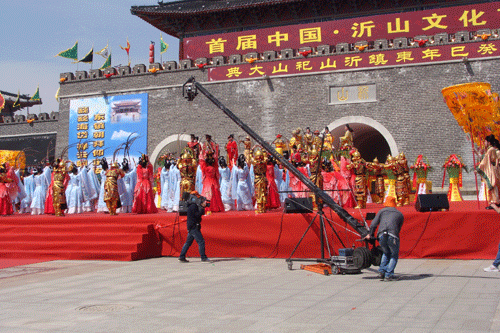 此次祀山大典,設(shè)計編排了從周穆王開始,16位帝王表演者按朝代先后順序再現(xiàn)、還原古代詔封東安王的歷史場景,重點展現(xiàn)了漢武帝的祀山禮儀。