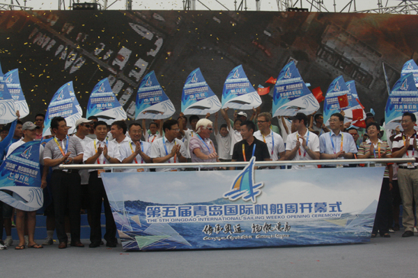 與會(huì)嘉賓共同啟動(dòng)第五屆青島國(guó)際帆船周 (胡青 攝)