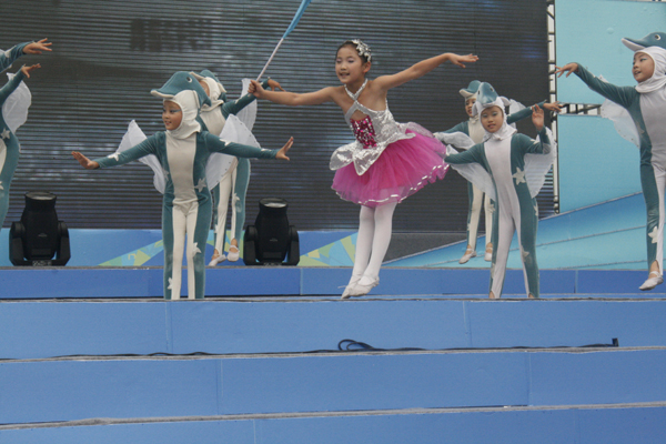 孩子們?cè)陂_(kāi)幕儀式上表演舞臺(tái)劇 (胡青 攝)