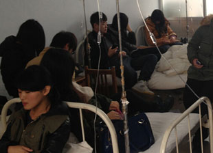 工作人員在為國Ⅲ排放標(biāo)準(zhǔn)的公交車安裝車用尾氣凈化裝置。