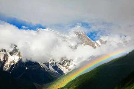 由于大峽谷內(nèi)水汽豐富,濕度較大,太陽出來的時(shí)候,這些水汽就蒸發(fā)成云霧,遮住了南迦巴瓦峰;到了晚上太陽落山,溫度降低,這些云霧就會(huì)慢慢散去。因此,即使是晴天,中午是很難看到南迦巴瓦峰的。如果住在南迦巴瓦峰下面的村子里,如直白村、格嘎村,天氣好的時(shí)候,你可以在夜晚看見沒有一絲云霧的南迦巴瓦峰,靜靜地沐浴著明亮的月光——此情此境,你的心靈會(huì)被徹底洗滌,成為你一生最寶貴的記憶。