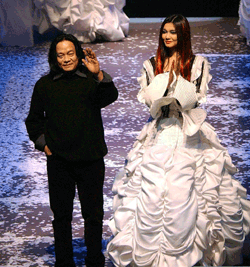 Suddenly, there he was bowing his thanks to the standing ovation from the audience, but he quickly ran back before his admirers tried to present him the flowers. "It's nothing more than a show. I'm happy if you enjoy it, but do not give me so many bouquets," Mark Cheung (Zhang Zhaoda) explained during an interview with China Daily after the catwalk show on the closing day of the 2003 China Fashion Week late last month. Cheung considers himself a common Cantonese man, too individual and unsociable to fit into the fashion industry. He is even thinking about returning to his hometown for an open competition of Chinese kung fu. The fashion master studied Shaolin quan or Shaolin boxing with his grandfather for 17 years and is still fascinated with it. But others see a different side of Mark Cheung. Many in and around the industry see him as an incurable romantic, a master craftsman, a designer who treats fashion as art and a peerless purveyor of glamour who keeps expanding his own labels as well as reviving several well-known domestic houses such as Firs. Arguably one of the most influential Chinese fashion designers today, Cheung draws inspiration from history and fantasy. In his themes fashions from long-gone eras are transformed with modern materials and cuts so that the old comes through in the new. Entitled "Four Seasons in the Forbidden City," Cheung's latest collection shown during the 2003 China Fashion Week was inspired by the elegant royal city. Borrowing from the ancient construction style and features, he used symmetrization, bias cutting, pleating, carving, lace-trimming, embroidering, fagoting, sequinsing and beading. And his use of colour is, perhaps, the most impressive aspect of the collection. The shining vermilion palace wall, the white marble balustrade, the dark green columns, the red gates with the golden brass buttons, the dusk of the evening in the royal city and the soft rosy and purple rays in the dark blue, spacious sky... all are highlighted in the dresses on the models. "The past and present both would show again in the future. I breathe the ancient air to explore tomorrow's fashion," Cheung summed up. Distinctive style Aside from the runway show, Cheung was the only designer to put on a still exhibition at the Academy of Arts and Design of Tsinghua University during Fashion Week. Cheung is only the second designer to put on such a solo exhibition in Beijing. The first was Yves Saint Laurent, who displayed his collection at the China National Art Museum in 1985. Cheung's exhibition presented 150 dresses from three collections featured in his catwalk shows in 2000, 2001 and 2002 China Fashion Week. Focusing on traditional Chinese culture and clothing, the three collections "Ethnic Flavour," "Royal Tune" and "Dunhuang Complex" show Cheung's passionate love for his home as well as his unique judgment and accurate forecasts of the world fashion trend. "Promoting Chinese culture and spirit through design is the duty of contemporary fashion designers. And Mark Cheung rightly carries the mission in practice," said Wang Mingzhi, president of the Academy of Arts and Design of Tsinghua University. "Compounding Chinese elements into his designs, Cheung does not simply imitate the ancient styles, but blends traditional senses and details such as the material using, cutting and accessories," said Liu Yuanfeng, professor with Beijing Institute of Clothing Technology. "Ethnic Flavour" shown in December 2000, is Cheung's interpretation of minority garb. "I wanted to revive the ethnic costumes with modern concepts, cuts and hi-tech materials naturally without looking awkward," he said. The inspiration came from his visit to an exhibition of ethnic costume during the Yunnan World Exposition in 1999. "The colourful home-made clothes impressed me. Although the ethnic youngsters are not willing to wear them except in some special occasions or ceremonies, I saw different cultures and customs of different ethnic groups from the clothes," he said. "Based on world trends, Chinese designers should work on Chinese features." For "Royal Tune," Cheung tried traditional luxurious materials such as silk, flax, iridescent satin, jacquard, combed popline, habotai, lutestring, brocade, taffeta and velvet to express the glamour of imperial costumes in China's history. Rich red, purple, golden and black look like a striking oil painting. "Dunhuang Complex" is the end result of a tour to Northwest China, especially to Mogao Grottoes. Located in Gansu Province, the historical site is full of Buddhist statues, frescoes and scriptures created throughout 1,500 years starting from 366 AD. From May to June 2002, Cheung travelled through the country's northwest region, from the Xinjiang Uygur Autonomous Region to Gansu and Shaanxi provinces. "When I stood on the desert in the ancient Hexi Corridor of Gansu in the sharp northwest wind, I felt its lasting desolation and grandeur. When I walked along the Silk Road against the blood-red sunset, I was reminded of its prosperous business. When I faced the absolutely marvelous scriptures in Mogao Grottoes, I imagined the flourishing Han and Tang dynasties. All the historical fragmentary, profound culture and mysterious religions filled my mind," Cheung recalled with great excitement. "The result is that the catwalk show looks more like a splash-ink painting to show the scenes and colours lingering in mind rather than a fashion collection. If you were impressed by the designs, you were impressed by Dunhuang, which had impressed and inspired me." Quiet genius Cheung was born in a small town called Shaxi in South China's Guangdong Province in 1963. Raised by his grandparents, Cheung started learning painting and kung fu when he was only four years old. Then at the age of 10 he began learning oil painting with Cantonese artist Huang Xiaochuan. One day he and a classmate were walking home after class, when a lightning bolt struck them. His classmate was killed at once 