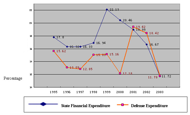 Chart 1: Comparison Between the Growth Rate of China's Defense expenditure and That of Its State Financial Expenditure (1995-2003)