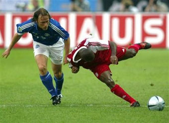 Bayern, which had lost to Schalke twice in the league, dominated the first half despite missing a penalty. Salihamidzic, however, scored the winner in the 76th minute on a play where Bayern appeared to be offside. Roy Makaay also scored for Bayern, putting in his own rebound in the 42nd minute, while Lincoln tied the game with a penalty in the 45th. Bayern, which has won 18 Bundesliga titles, claimed its 12th cup title. On a warm night, the players got some unexpected refreshment when the sprinkler system at the stadium that will host next year's World Cup final went off suddenly. The match was interrupted briefly while the water was turned off.