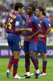 Defender Oleguer Presas nearly gave Sociedad the lead in the 15th when he headed the ball off his own bar. Barcelona finished its season with 84 points. "There weren't many chances but my team was very well organized and did its job. With a little more aggressiveness we could have scored a goal or two," Barcelona coach Frank Rijkaard was quoted as saying by news agency Efe. In Saturday's other game, Real Madrid concluded a disappointing season by beating Zaragoza 3-1 on goals by Michael Owen, Roberto Carlos and Ronaldo. Madrid, which hasn't won a major trophy in two years, finished in second place with 80 points and a 10-match unbeaten streak. "Real Madrid always wants to win. We were in three competitions - the league, the Champions League and the Copa del Rey - and we didn't win any. We'll have to wait until next season," Madrid coach Vanderlei Luxemburgo said. Owen gave his team a 25th-minute lead at Zaragoza's La Romareda stadium after goalkeeper Luis Garcia had fumbled Zinedine Zidane's low shot. The goal was the English striker's 13th of the season. Zaragoza leveled in the 44th when midfielder Oscar Gonzalez exchanged passes with striker David Villa before firing a rising shot from close range. Owen, who with David Beckham were to join England for its match Tuesday against Colombia in East Rutherford, New Jersey, was replaced by Luis Figo at halftime. Figo had been omitted from the starting lineup for the eighth straight match even though Beckham was unavailable because of suspension. Roberto Carlos restored Madrid's lead with a low shot in the 53rd following a well-worked move involving Zidane and Raul Gonzalez. Ronaldo sealed the win in injury time with his 21st goal of the season, taking the ball past Garcia and walking the ball into an empty net. Spain's remaining two places in next season's Champions League will be decided on Sunday, as will the UEFA Cup berths. Villarreal and Betis will join Barcelona and Madrid in the Champions League if they win their final matches. Villarreal faces Levante and Betis plays Mallorca. Sevilla and Espanyol still have hopes if Villarreal and Betis stumble. Sevilla will play Malaga and Espanyol takes on Athletic Bilbao. Levante and Mallorca will be battling to avoid the final relegation place. Numancia and Albacete already have been relegated. Sunday's other games are: Racing Santander vs. Albacete; Atletico Madrid vs. Getafe; and Numancia vs. Deportivo La Coru?a.