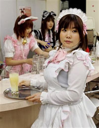 string of pop-culture-mad customers at a "Maid Cafe" in Tokyo's