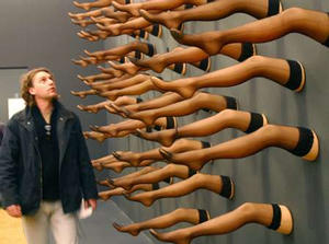 A man takes a closer look at a display in the Salvador Dali exhibition 'Mass Culture', as part of special events in honor of the Catalan artists' 100th birthday this year, at the CaixaForum in Barcelona, February 4, 2004. The exhibit, consisting of over 400 works by the artist, is to offer an overview of the contact between painting and popular culture that Dali maintained throughout his life. The exhibition runs from February 6 to May 23. [Reuters]
