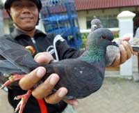 A man prepares to release race pigeons in Jakarta, Indonesia, September 29, 2005. The number of suspected bird flu cases in Indonesia rose to 48 on Thursday as the health minister appealed for people not to shun patients suffering from the virus, saying close contact with them was not dangerous. [AP] |