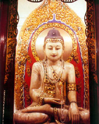 two-meter-high white jade sitting Buddha encrusted with jewels. It is said the