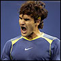 Roger Federer defended his US Open title dominating a third set tie-break to defuse the challenge of 35-year-old Andre Agassi before winning 6-3, 2-6, 7-6 (7/1), 6-1.