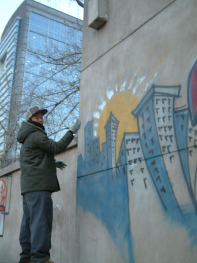 Graffiti in BeijingUpdated: 2007-06-15 08:56 Li Qiuqiu is one of the first graffiti artists in Beijing. He started doing graffiti ten years ago, and now runs a skateboard store. The same as in New York, graffiti in Beijing is a part of youth subculture and most graffiti artists are fans of cartoons and skateboarding. These youth usually meet in rock clubs or skateboard stores, and party at night. Li first started doing graffiti in his neighborhood, but then made his way over to nearby cloverleaf junctions, train stations and deserted houses. He often plays hide-and-seek with the members of the local residents committee. "That's why graffiti is so interesting," Li said. "Sometimes we did graffiti at night but then the wall was painted over the next day, and our graffiti had disappeared." Because there are not many chances for them to do graffiti, artists do everything in their power to exhibit their works in public places and get attention. Yi Bing, a twenty-seven-year old sports product designer and four-year graffiti artist thinks that excellent graffiti work contains some elements of China, like the Buddha, the Chinese character, Arhat, the Chinese Knot or the Auspicious Cloud. Graffiti arrived in Beijing in the 1990s, when a person's profile began