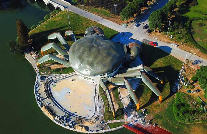 A building in the shape of hairy crab is under construction on the eastern bank of Yangcheng Lake, Kunshan, East China's Jiangsu province, on Oct 31, 2017.