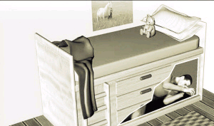 行事謹(jǐn)慎的詹寧斯行動一向詭異。“主人”家的電視機和衛(wèi)生間他碰都不敢碰,每當(dāng)聽到臥室門外有動靜時,便立即拉開床下的抽屜藏入其間。詹寧斯還屢屢對這名善良的少女實施性侵害。