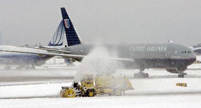 美國中部遭遇暴風雪襲擊機場在清掃積雪