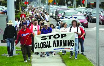 2006年9月4日,美國南伯靈頓地區(qū),超過600名示威者抗議全球變暖現(xiàn)象日益嚴(yán)重。