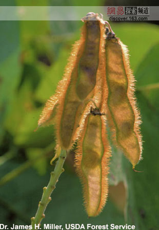葛藤是一種半木本的豆科藤蔓類植物,具有驚人的蔓延力和繁殖力,可以大面積地覆蓋樹木和地面。據(jù)估計在美國東部葛藤每年以兩到三百萬公頃的速度蔓延著,造成的作物減產(chǎn)和滅除葛藤的費(fèi)用每年都達(dá)到了五億美元。