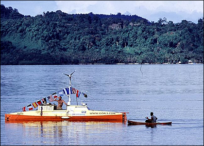 為了避免穿越太平洋的赤道無(wú)風(fēng)帶,他們從加利福尼亞前往洪都拉斯,但在抵達(dá)后卻因?yàn)?997年的“厄爾尼諾”現(xiàn)象引發(fā)的颶風(fēng)而被迫返回。當(dāng)他們終于乘坐腳踏船準(zhǔn)備跨越大平洋時(shí),卻發(fā)現(xiàn)與洋流逆向時(shí)寸步難行,整整3個(gè)星期只能待在原地。