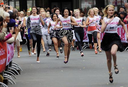 ????這次比賽由一家時尚雜志贊助,吸引來自德國各地人士報名參加。參賽者必須穿著七公分或以上的高跟鞋跑完一百米。
