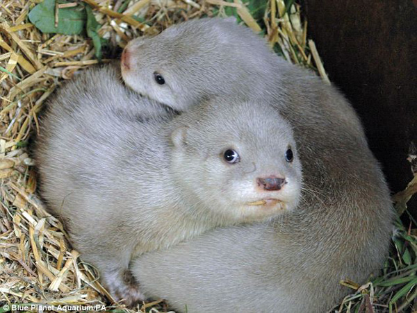 據(jù)《每日郵報(bào)》報(bào)道,英國(guó)柴郡藍(lán)色星球水族館3月底誕生兩只白色水獺幼仔。作為水獺一族,黑色的皮膚及毛發(fā)是它們傳統(tǒng)的標(biāo)志,因此這兩只白色幼仔格外惹人注意。