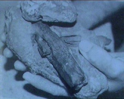 人類是不可能存在于0.65億年前的,那個時期不存在能夠制造金屬工具的人類。在法國挖掘的一塊0.65億年前白堊(一種松軟的方解石粉塊)中卻包含著半卵型金屬管將如何進行正確科學(xué)解釋呢?1885年,一塊煤分裂后發(fā)現(xiàn)其中包含著一塊金屬立方體,看上去明顯是智能手工制品。1912年,電廠的職工分裂一個大塊煤,竟發(fā)現(xiàn)其中掉下來一個鐵制壺!此外,考古學(xué)家還發(fā)現(xiàn)一個指甲深深地嵌入中生代時期的沙巖阻滯層中,還有許多的離奇事件有待于這一步。