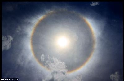 據(jù)英國《每日郵報(bào)》報(bào)道,7月20日,位于英國南部的伯恩茅斯海灘上空突然出現(xiàn)了這樣美輪美奐的一幕:太陽被一個(gè)神秘光暈所環(huán)繞,好像一只巨大的“眼睛”從天堂凝視著人間。
