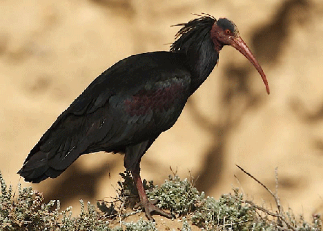 歐洲禿鵑曾因受到古埃及法老尊崇而被譽為“法老之鳥”。它們的與眾不同之處在于莫西干風格的黑色翅膀以及長長的、向下彎曲的紅色鳥喙。它們在17世紀被迫離開阿爾卑斯山,如今世界上僅存的野生禿鵑群落位于摩洛哥沿岸地區(qū),那里棲息著350只這種鳥。