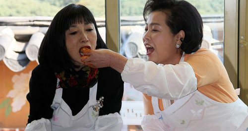 日本前首相鳩山由紀夫的妻子鳩山幸和韓國前總統(tǒng)李明博的妻子金潤玉展現(xiàn)親和、愛民的形象。2009年,鳩山幸陪同剛出任首相的丈夫出訪韓國,受到金潤玉邀請,參觀一家傳統(tǒng)飲食研究所,開啟雙方一段“泡菜外交”。韓國“第一夫人”用手夾起泡菜,喂給鳩山幸。