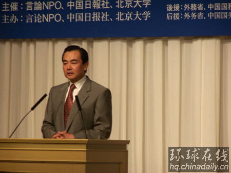 環(huán)球在線消息:中國駐日大使王毅在剛剛開幕的“北京·東京”論壇第二屆會議上闡述了中國政府的對日政策,強調改善中日關系已成為當前兩國人民的共同呼聲。他說,為推動兩國關系盡快走出目前的僵局,建議從四個方面做出努力。