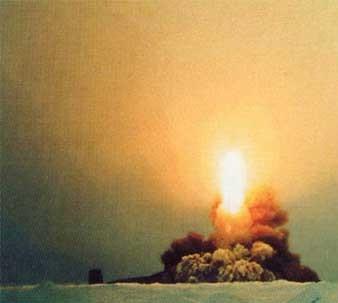 圖片說明:俄核潛艇發(fā)射RSM-52戰(zhàn)略導(dǎo)彈瞬間