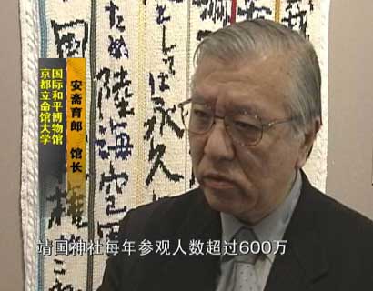 解說:這座大學(xué)內(nèi)的和平博物館開館12年,有超過三千多所日本大中小學(xué)學(xué)生參觀,累計(jì)有50多萬人次,但是,與靖國神社每年600萬的參觀量相比,這的確是一個(gè)微不足道的數(shù)據(jù)!