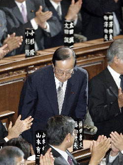 而在參議院全體會議舉行的首相指名選舉中,在239張有效選票中,最大的反對黨民主黨代表小澤一郎贏得過半數的133票,也當選新首相。