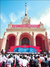 7月19日,首屆“全國(guó)中小企業(yè)創(chuàng)新與發(fā)展成果展覽會(huì)”在北京展覽館開展。數(shù)千名政府官員和商界人士參加了開幕式。