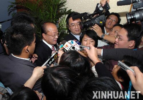 10月17日,十七大代表、國家質(zhì)檢總局局長李長江在北京梅地亞中心的十七大新聞中心接受中外媒體采訪。這是采訪結(jié)束后,記者們?nèi)匀粻幭嗵釂?。新華社記者 王思維 攝