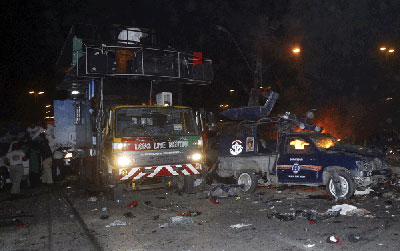 中國日報網環(huán)球在線消息:在海外流亡8年之后,巴基斯坦前女總理貝?布托日前重返故土。然而,就在她的車隊10月19日凌晨緩緩駛入巴南部城市卡拉奇的時候,車旁突然發(fā)生爆炸,400余人傷亡,釀成巴基斯坦歷史上最嚴重的自殺性爆炸事件。