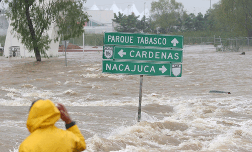 在塔瓦斯科州首府比亞埃爾莫薩,至少有兩萬人被安排到避難所,洪水淹沒了許多居所的屋頂,該州州長安德烈斯·格拉涅爾敦促更多的居民從家中撤離。格拉涅爾在接受電視臺采訪時就一些居民不愿離開居所的情況說:“如果他們不離開,我會下命令使用武力讓他們離開?!?/p>