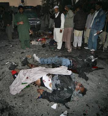 爆炸事件發(fā)生在當(dāng)?shù)匾粋€(gè)由巴基斯坦反對(duì)派領(lǐng)導(dǎo)人貝·布托支持者舉行的群眾集會(huì)上。爆炸發(fā)生后,現(xiàn)場(chǎng)一片狼藉,貝·布托發(fā)表演講的公園后門處可以看到死尸殘肢,死者中包括警察,還有許多人受傷。