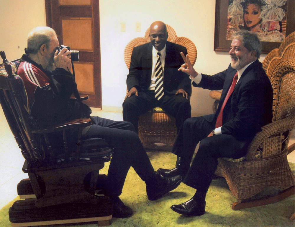 據(jù)美國(guó)媒體報(bào)道,卡斯特羅當(dāng)天在古巴首都哈瓦那與巴西總統(tǒng)盧拉舉行了兩個(gè)半小時(shí)的長(zhǎng)談。從古巴官方發(fā)布的一張照片上看,卡斯特羅身著運(yùn)動(dòng)服,腳穿網(wǎng)球鞋,頭發(fā)梳得整整齊齊,面露笑容,與盧拉侃侃而談。