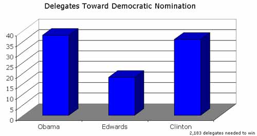 在美國2008大選中,民主共和兩黨的候選人為了獲得黨內(nèi)提名,必須在2008年夏舉行的全國黨代表大會上贏得多數(shù)代表的支持。代表們支持誰則取決于各州預(yù)選會議和初選的結(jié)果。各州出席全國代表大會的代表人數(shù)按比例分配。