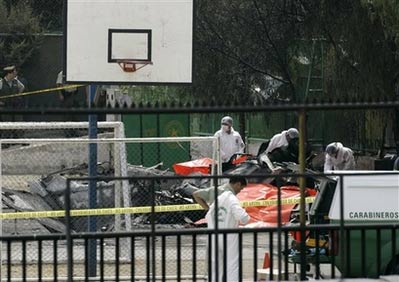 智利警方通報說,失事飛機為塞斯納210飛機,可搭乘6人,屬于智利軍警航空俱樂部。27日上午9時45分,飛機按計劃從圣地亞哥佩納洛倫區(qū)起飛執(zhí)行訓練任務,3分鐘后即與地面失去聯(lián)絡。10時左右,飛機在佩納洛倫區(qū)體育場內(nèi)墜毀并解體,機上2名警員、4名學員全部遇難。飛機墜毀時,體育場內(nèi)有14人正在進行體育鍛煉,墜毀的飛機造成地面4人當場死亡,其中包括一名72歲的老人和一名4歲女童,另有一名婦女因燒傷嚴重,搶救無效在醫(yī)院死亡,目前仍有4人傷勢嚴重,隨時有生命危險。