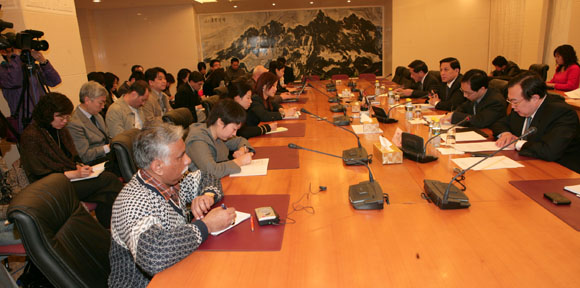 中國日報網環(huán)球在線消息:4月3日上午,外交部副部長張業(yè)遂為中外記者舉行吹風會,介紹胡錦濤主席將在海南省舉行國事活動并出席博鰲亞洲論壇2008年年會情況。