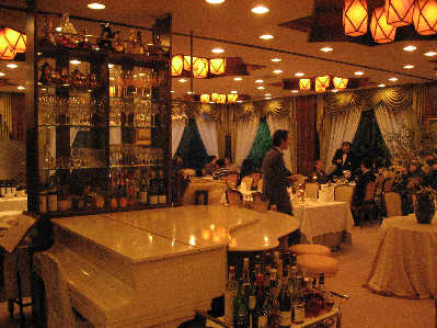 在小坂哲瑯的帶領(lǐng)下,記者來(lái)到將在6日晚間招待胡錦濤主席用餐的三樓宴會(huì)廳。大廳入口處擺放著一架白色三角鋼琴,左側(cè)的玻璃架里有各色葡萄酒供賓客享用。鋪著淡色桌布的餐桌上擺著鮮花和精致的法式餐具。在悠揚(yáng)的長(zhǎng)笛曲中,宴會(huì)廳的氛圍顯得格外寧謐優(yōu)雅。記者注意到,這里的侍應(yīng)生大多較為年長(zhǎng),他們身穿西裝套服,彬彬有禮,風(fēng)度不凡。