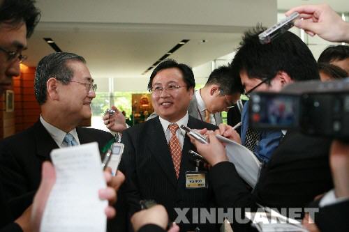 5月1日,在日本東京的首相官邸,全日本中國留學人員友好聯(lián)誼會會長李光哲(中)在日本首相福田康夫會見中國留學生代表后接受記者采訪。在中國國家主席胡錦濤即將訪日之際,福田當天下午在首相官邸接見了10名中國留學生代表。福田表示,希望日中兩國年輕人共同努力,為日中友好做出貢獻。新華社記者任正來攝