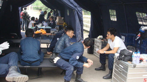 記者看到,這支新加坡救援隊伍在一個破損廠房前的空地駐扎下來后,就立即投入了緊張的救援工作。他們帶著救生犬在鎮(zhèn)上巡查。新加坡國際救援隊隊長黃浩泉對記者表示,目前在五個點的重點探測搜救中,均無發(fā)現(xiàn)生命跡象,但并不排除別的地方還有生命跡象的可能,搜救工作仍將繼續(xù)。