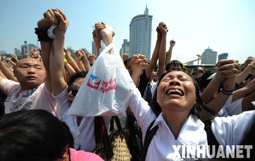 5月19日,數(shù)萬(wàn)群眾匯集在成都天府廣場(chǎng),深切哀悼四川汶川大地震遇難同胞?!⌒氯A社記者江宏景攝
