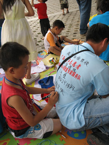5月26號廣西青年志愿者12355青少年心理康復(fù)專家服務(wù)隊抵達(dá)綿陽九洲體育館受災(zāi)群眾安置點(diǎn)開始,包括黃治承在內(nèi)的14名心理學(xué)專家每天都穿梭在受災(zāi)群眾的人群中,本著“主動出擊尊重互助”的態(tài)度,盡可能多的幫助受災(zāi)群眾走出震災(zāi)的陰霾。截至今天,他們已經(jīng)開展個人心理咨詢或訪談250多人次,為90名九洲帳篷學(xué)校的學(xué)生上心理健康輔導(dǎo)課一次,志愿者溝通技巧團(tuán)體輔導(dǎo)11人次,開辦“流動幼兒園”2所。